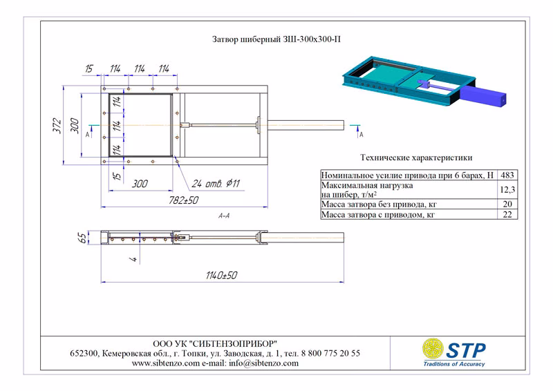 Наименование Габариты проходного окна шибера, мм Состав затвора шиберного ЗШ Масса Максимальная нагрузка на шибер, т/м2